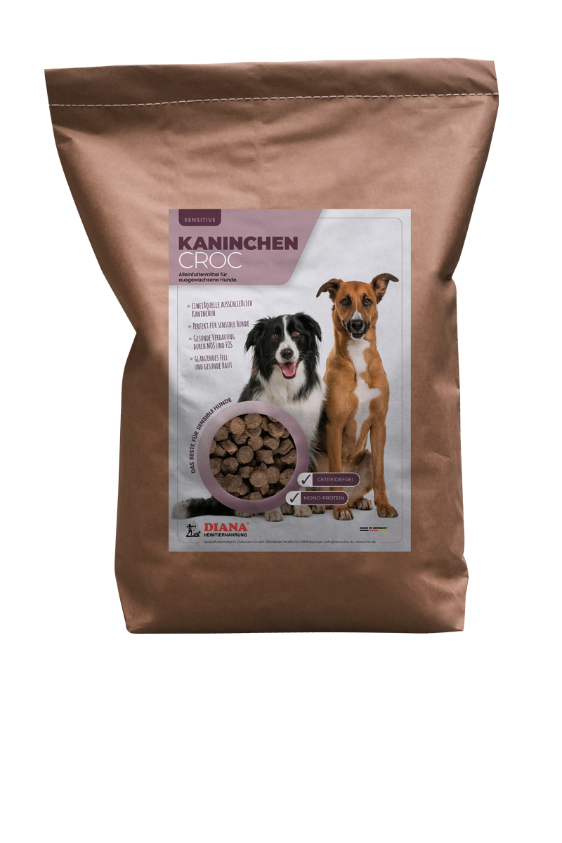 DIANA Kaninchen Croc Hypoallergen ist eine hypoallergene getreide- und glutenfreie Vollnahrung für alle Hunderassen. Dies gibt Ihnen die Möglichkeit für eine alternative Ernährung von Hunden, die auf Getreide und Gluten negativ reagieren. Außerdem enthält DIANA Kaninchen Croc Hypoallergen als Fleischanteil ausschließlich Kaninchenfleischmehl. Damit lassen sich Probleme mit anderen tierischen Proteinen vermeiden. Die vielseitige Zusammensetzung sorgt für eine ausgewogene Ernährung.